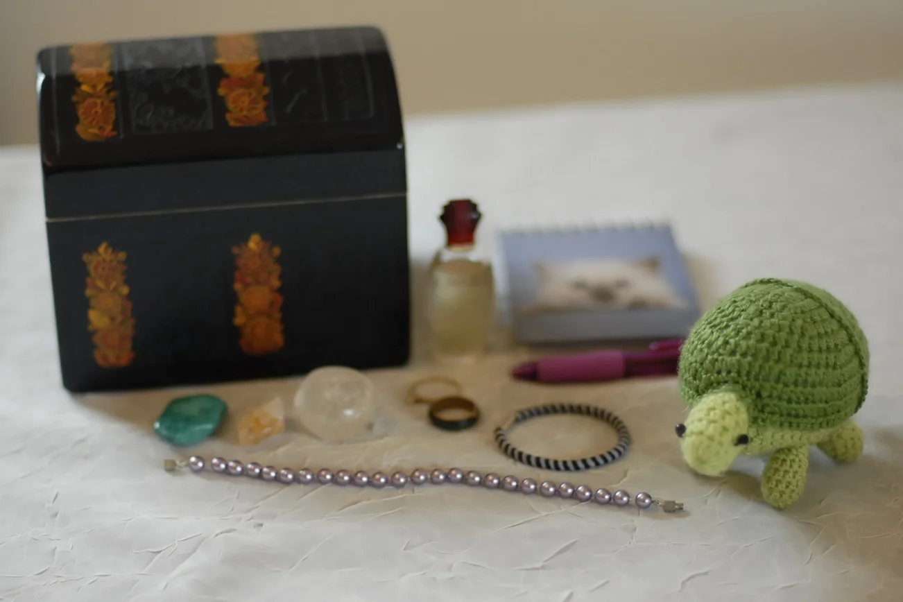 A grounding box is a little coping skills kit you can make. You can also make a portable version, maybe in a small bag, to carry with you. They're great for those times when you're feeling triggered and need a little distraction.